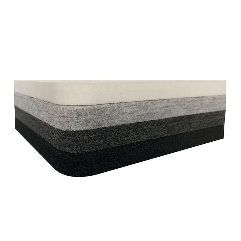 Өндіріс кезінде барлық талшықтар көлденең және тік біріктірілген, бұл PET акустикалық тақтасын қатты, икемді және соққыға төзімді етеді.Инемен тесу арқылы PET акустикалық панелінде көптеген ұсақ тесіктер бар, бұл PET акустикалық панелін шуды азайтатын және дыбысты жақсырақ, кеңістікті тыныш ететін тамаша акустикалық өнімге айналдырады.