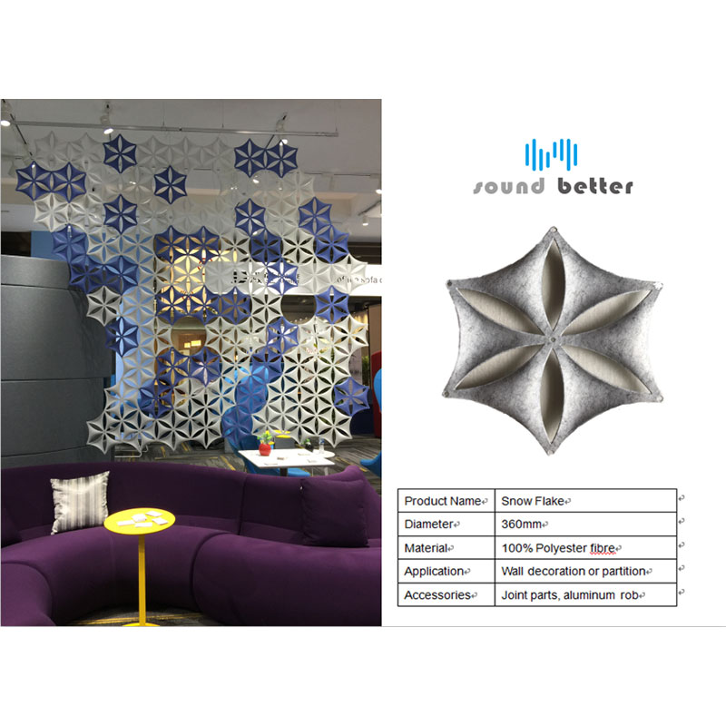 Көптеген адамдар үйлеріне немесе кеңселеріне кіретін шыны талшықты материалдардың ықтимал алаңдаушылығын ескере отырып, сәулетшілер, құрылысшылар және дизайнерлер декорациямен бірге шуды азайту үшін PET 3D акустикалық қабырға панелі сияқты қауіпсіз, жұмсақ және орнату оңай өнімдерді пайдаланады.