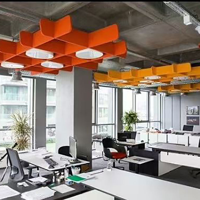 Soundbetter PET төбеге арналған акустикалық панельдер бұл мәселе жиі кездесетін үлкен кеңсе бөлмелері немесе тұрғын үй шатырлары үшін тамаша сәйкес келеді. Қабырғалар мен төбелерге полиэстерден жасалған акустикалық панельдерді орналастыру - кез келген бөлмедегі жаңғырықты, ревербті және жалпы қоршаған шуды азайтудың ең жақсы жолы.